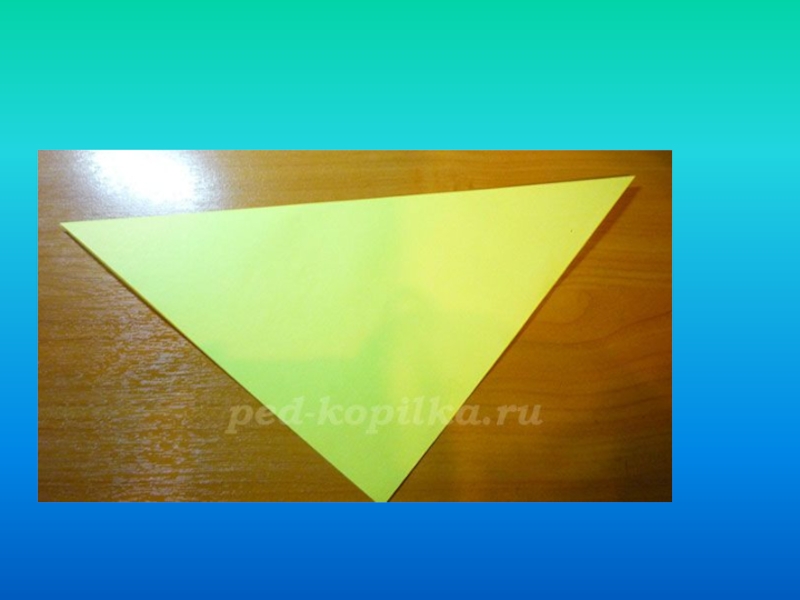 Слайд 23Сгибаем квадратный лист по диагонали, получился треугольник.