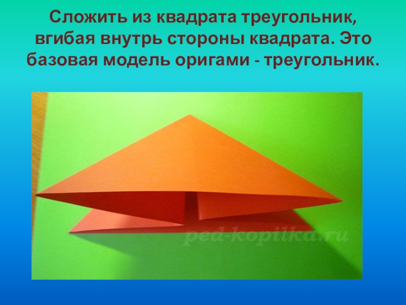 Слайд 7Сложить из квадрата треугольник, вгибая внутрь стороны квадрата. Это базовая модель