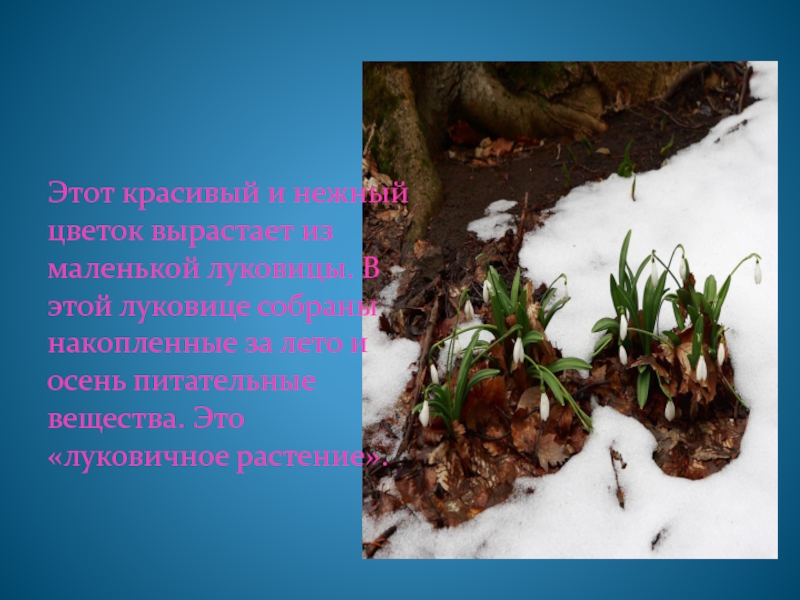 Слайд 7Этот красивый и нежный цветок вырастает из маленькой луковицы. В этой