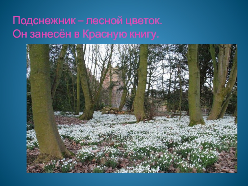 Слайд 9Подснежник – лесной цветок. Он занесён в Красную книгу.