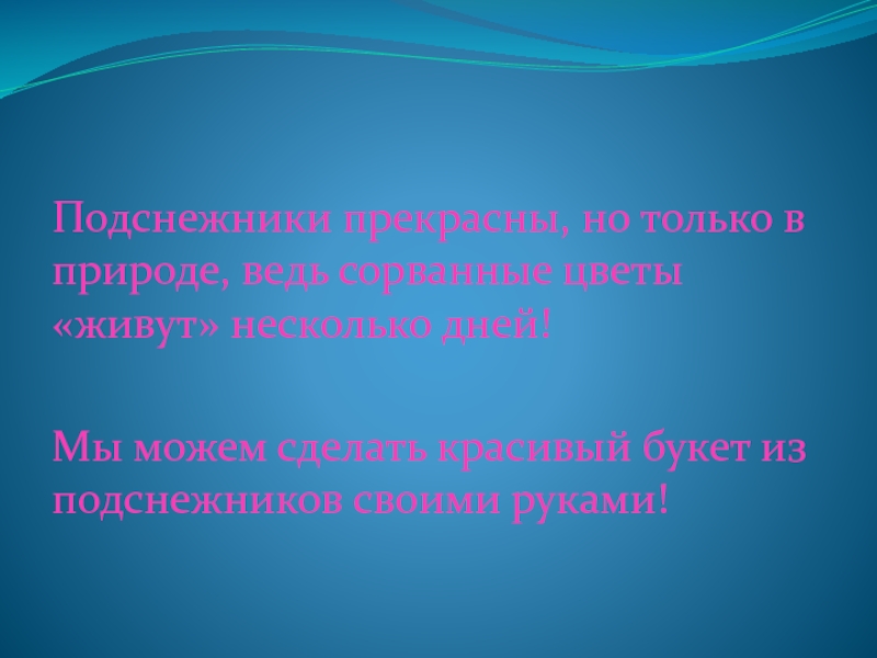 Слайд 10Подснежники прекрасны, но только в природе, ведь сорванные цветы «живут» несколько