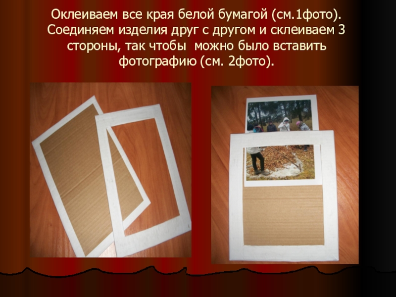 Слайд 6Оклеиваем все края белой бумагой (см.1фото). Соединяем изделия друг с другом