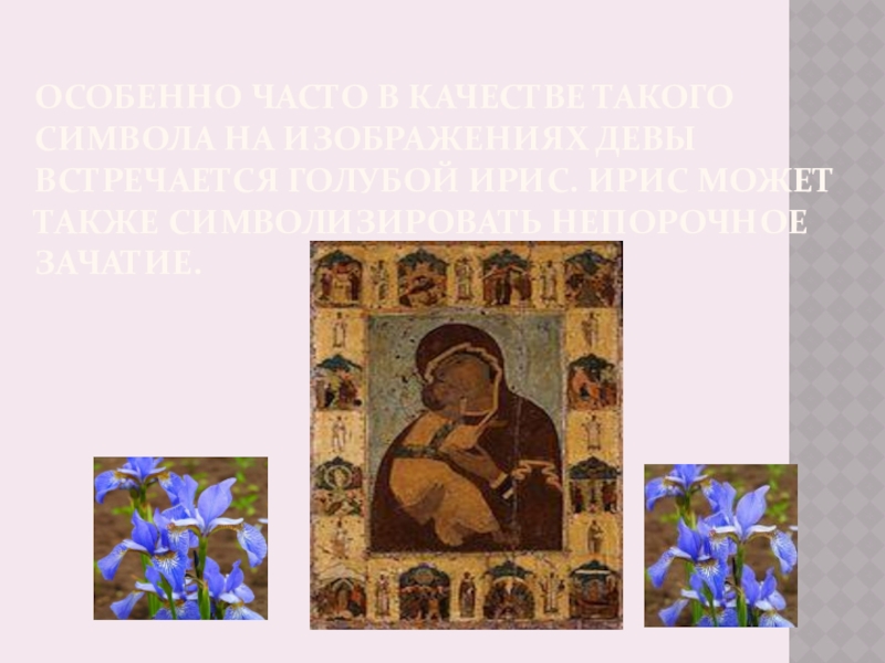 ИРИС. ИРИС МОЖЕТ ТАКЖЕ СИМВОЛИЗИРОВАТЬ НЕПОРОЧНОЕ ЗАЧАТИЕ.