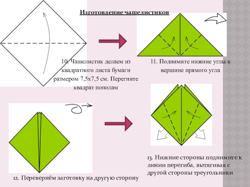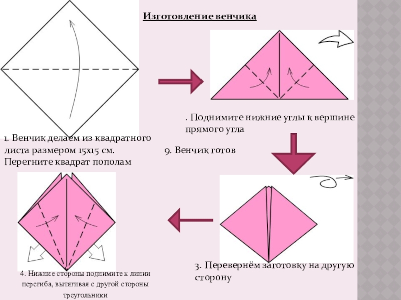 квадратного листа размером 15x15 см. Перегните квадрат пополам