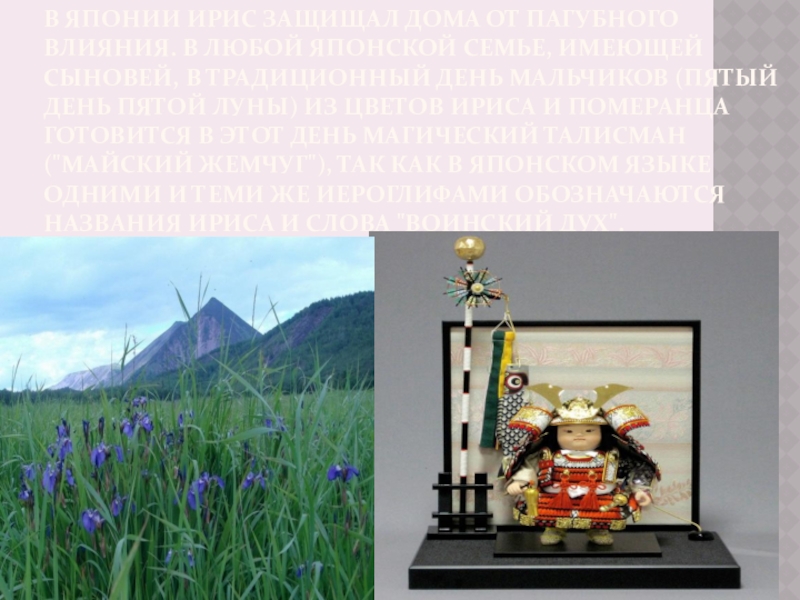 Слайд 5В ЯПОНИИ ИРИС ЗАЩИЩАЛ ДОМА ОТ ПАГУБНОГО ВЛИЯНИЯ. В ЛЮБОЙ ЯПОНСКОЙ