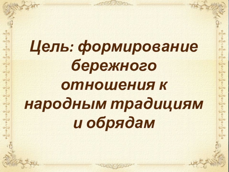 Слайд 2Цель: формирование бережного отношения к народным традициям и обрядам