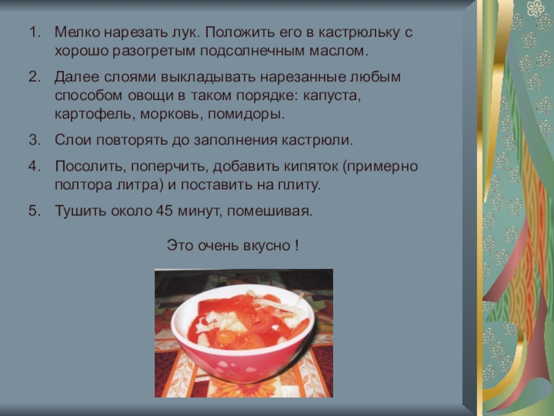 Репчатый лук мелко порезать и ошпарить кипятком. Действуйте очень осторожно!