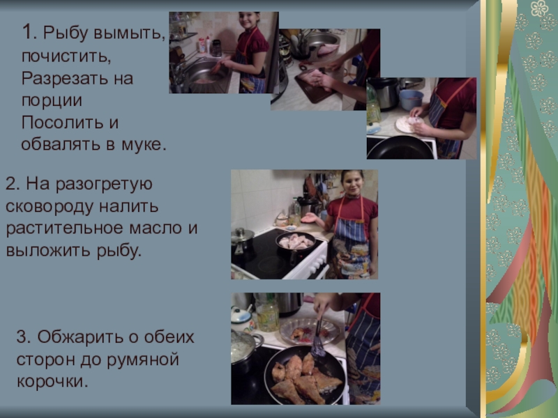 Куски филе обмакнуть в яичную смесь, затем в муку и на разогретую сковороду. Поджарить филе до готовности.
