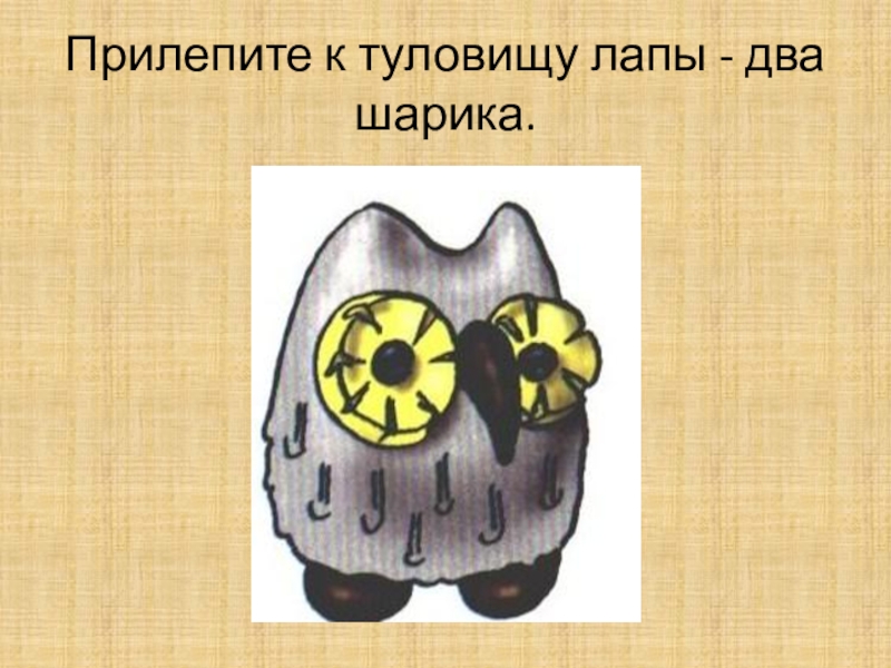 Слайд 9Прилепите к туловищу лапы - два шарика.