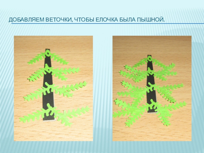 Слайд 5Добавляем веточки, чтобы елочка была пышной.