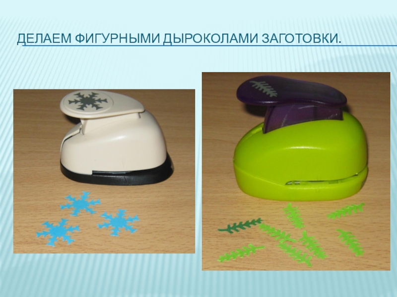 Слайд 3Делаем фигурными дыроколами заготовки.