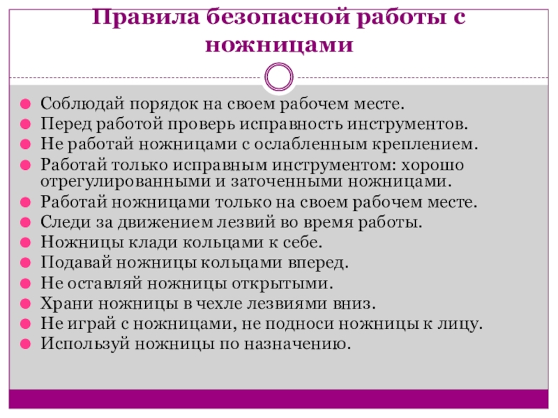 Работай только исправным инструментом: хорошо отрегулированными и заточенными ножницами.