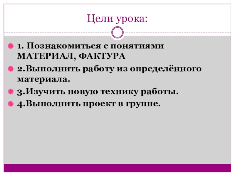 1. Познакомиться с понятиями МАТЕРИАЛ, ФАКТУРА
