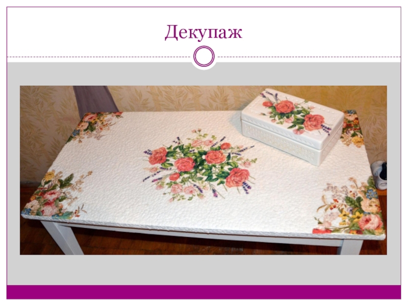 -техника декорирования различных предметов. Истоки декупажа восходят к Средневековью. Как вид искусства