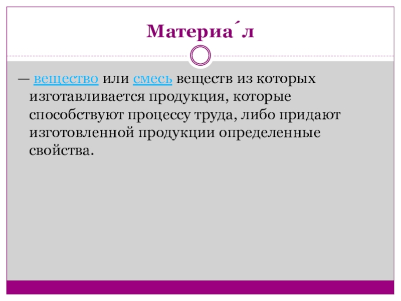 — вещество или смесь веществ из которых изготавливается продукция, которые способствуют процессу труда, либо придают