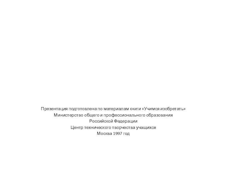 Презентация подготовлена по материалам книги «Учимся изобретать» Министерство общего и профессионального образования Российской ФедерацииЦентр технического творчества учащихся