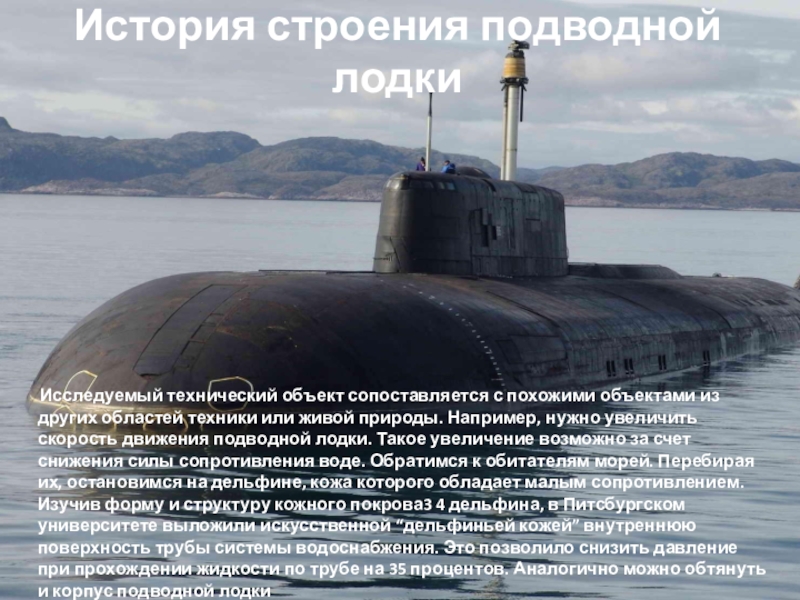 История строения подводной лодки    Исследуемый технический объект сопоставляется с похожими объектами из других областей