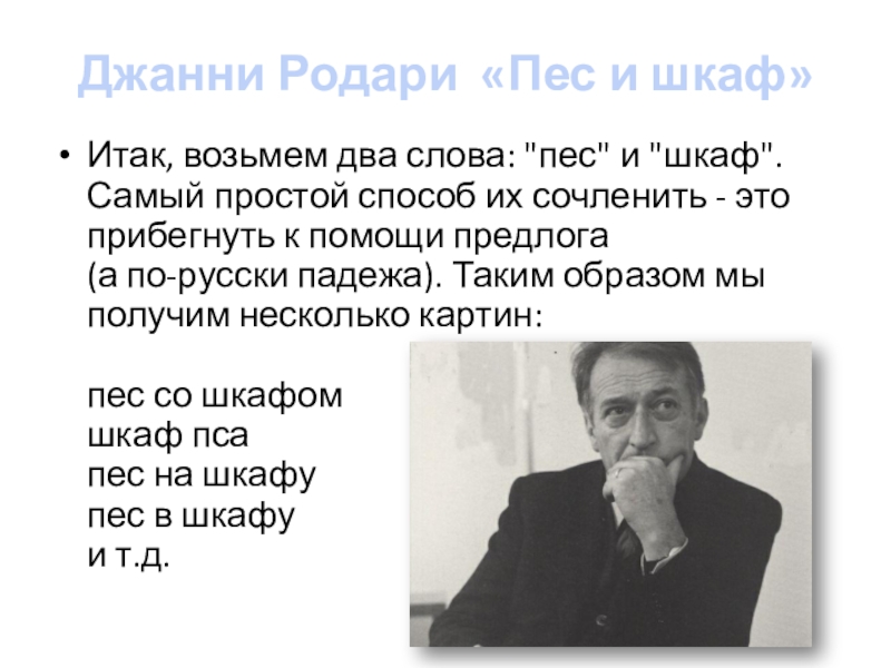 Джанни Родари «Пес и шкаф»Итак, возьмем два слова: