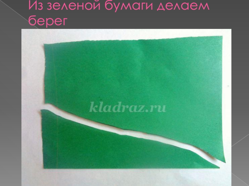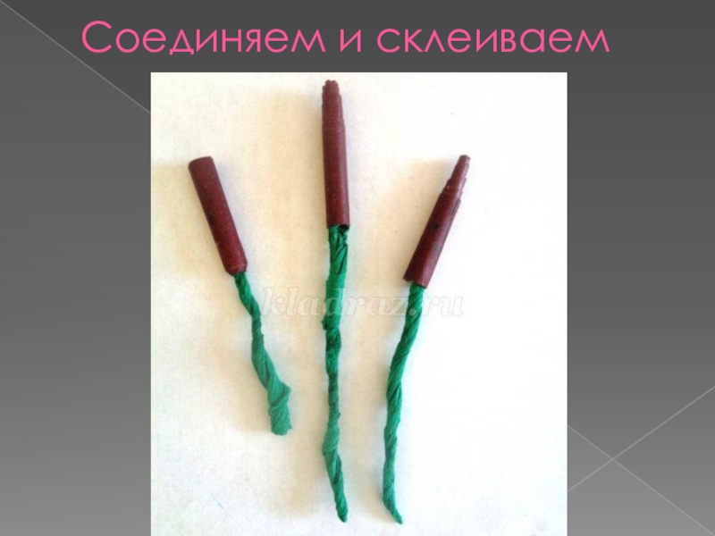 Слайд 20Готовим камыши. Из зеленой салфетки делаем стебель
