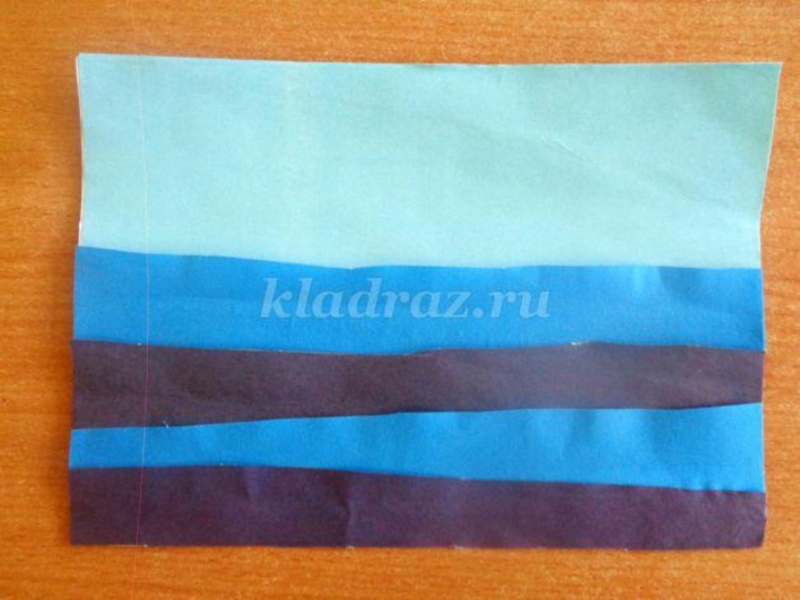Готовим фон. Вырезаем кусок светло-голубой бумаги – это небо