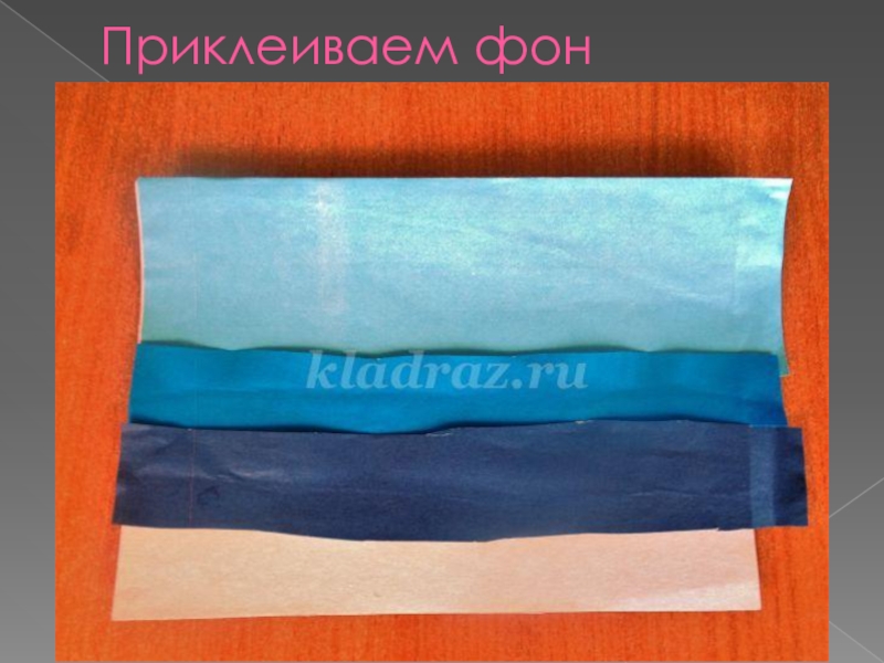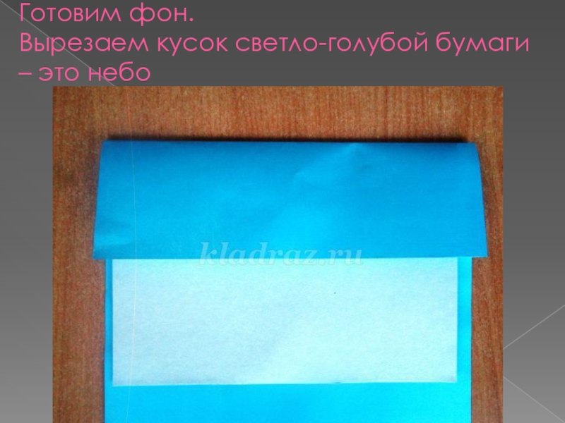 Слайд 15Готовим фон. Вырезаем кусок светло-голубой бумаги – это небо