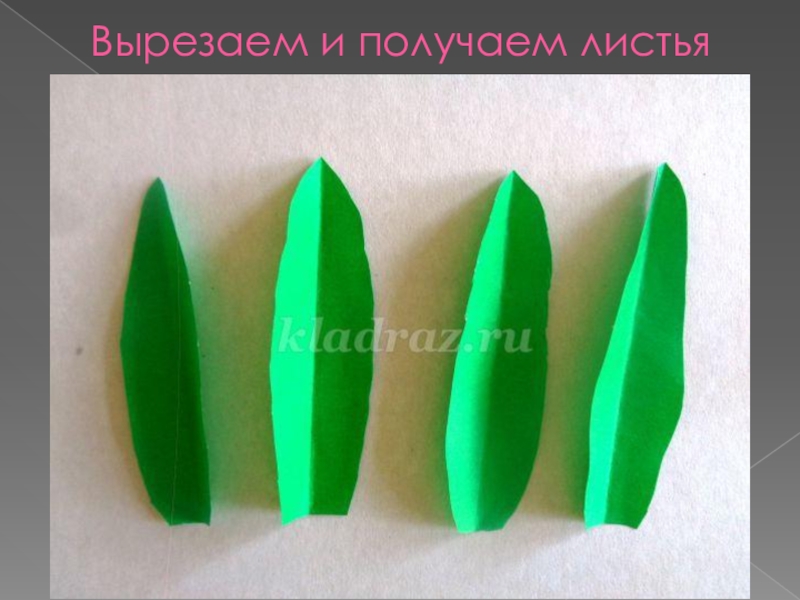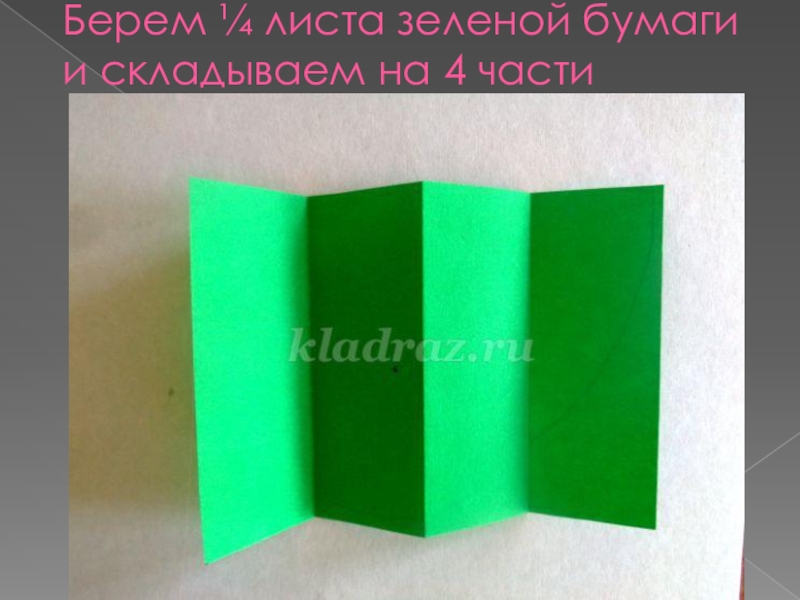 Слайд 24Берем ¼ листа зеленой бумаги и складываем на 4 части