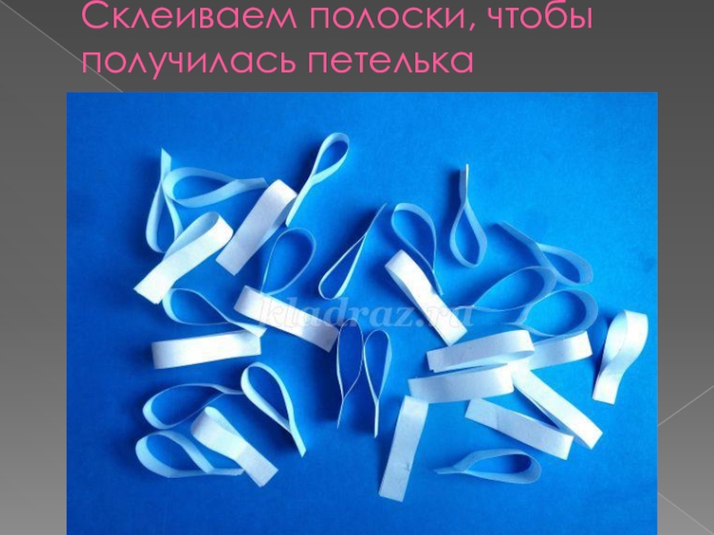 Слайд 6Склеиваем полоски, чтобы получилась петелька