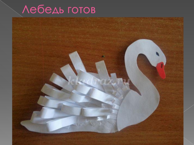 Используемый ресурс:http://kladraz.ru/blogs/tatjana-nikolaevna-kokorina/-lebyodushka-podelka-iz-bumagi-s-detmi-5-6-let-master-klas-s-poshagovym-foto.html
