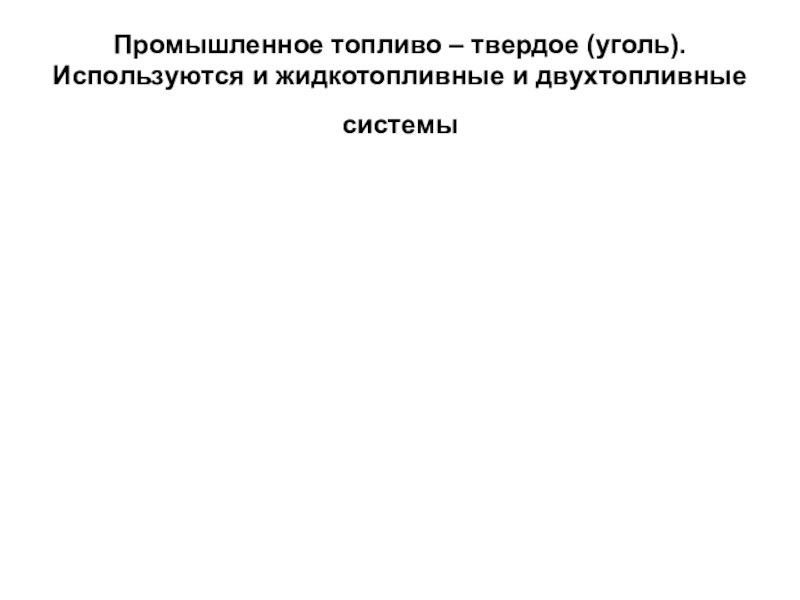 Слайд 8Промышленное топливо – твердое (уголь). Используются и жидкотопливные и двухтопливные системы
