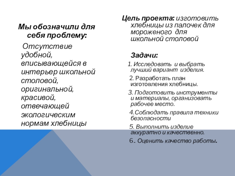 Цель проекта: изготовить хлебницы из палочек для мороженого для школьной столовой