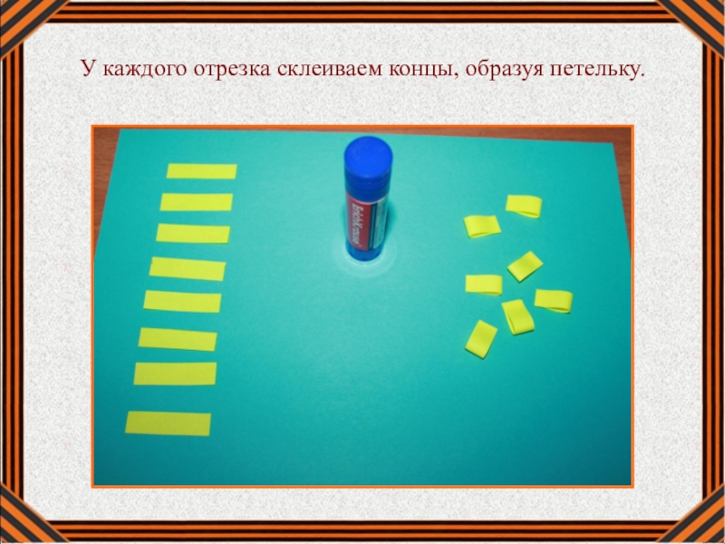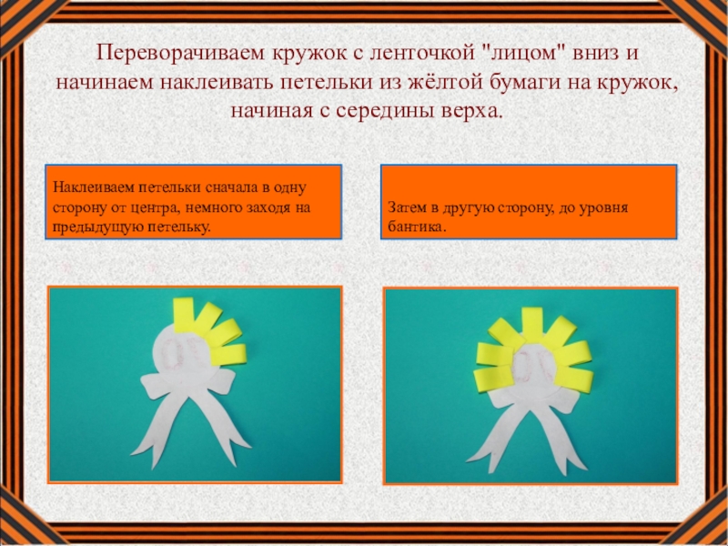 Наклеиваем петельки сначала в одну сторону от центра, немного заходя на предыдущую петельку.