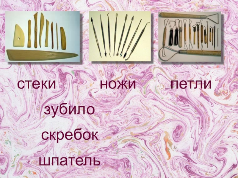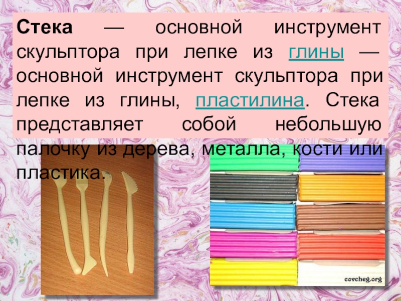Слайд 5Стека — основной инструмент скульптора при лепке из глины — основной