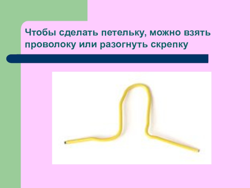 Слайд 12Чтобы сделать петельку, можно взять проволоку или разогнуть скрепку