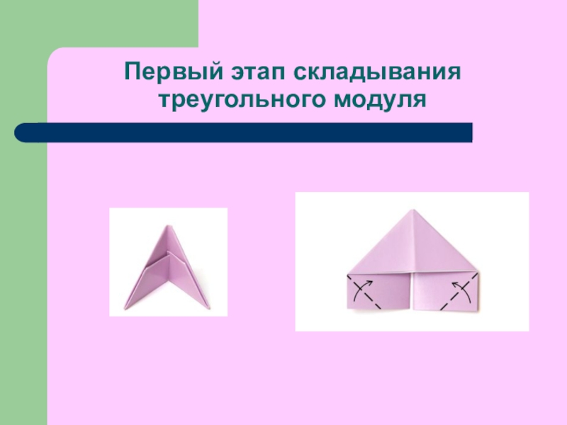 Слайд 6Первый этап складывания треугольного модуля