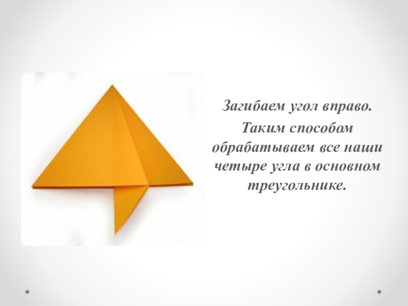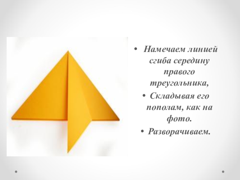 Слайд 5 Намечаем линией сгиба середину правого треугольника,