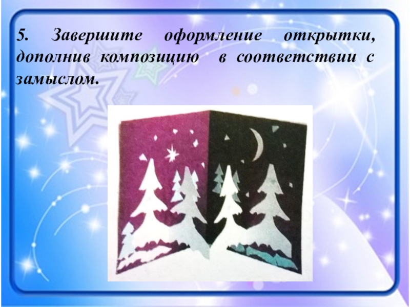 Слайд 125. Завершите оформление открытки, дополнив композицию в соответствии с замыслом.