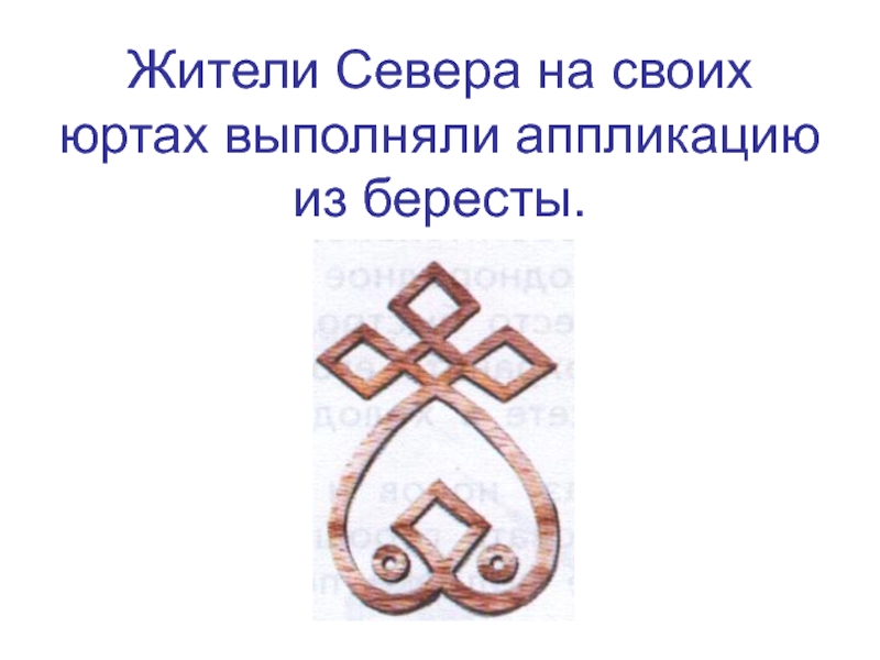 Слайд 4Жители Севера на своих юртах выполняли аппликацию из бересты.