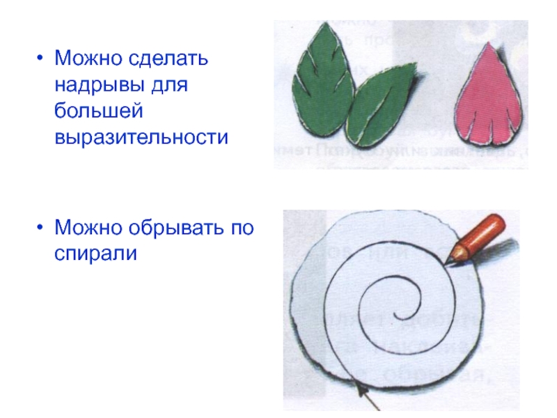 Можно сделать надрывы для большей выразительностиМожно обрывать по спирали