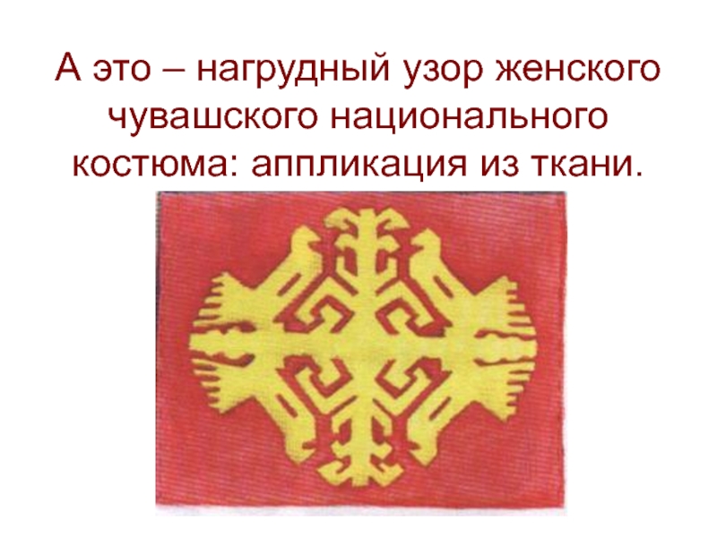 Слайд 6А это – нагрудный узор женского чувашского национального костюма: аппликация из
