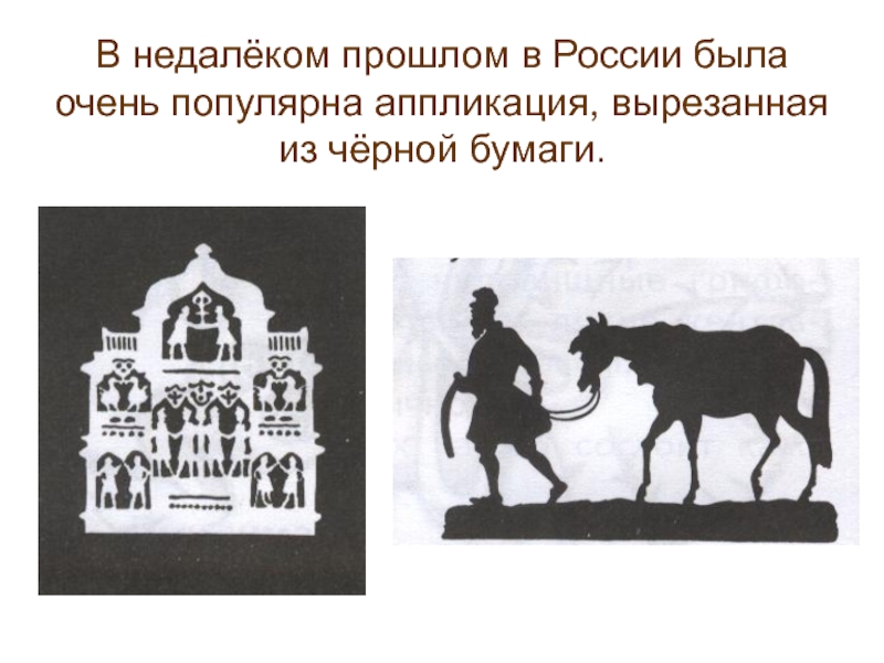 Слайд 7В недалёком прошлом в России была очень популярна аппликация, вырезанная из