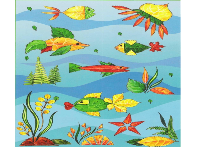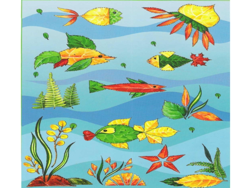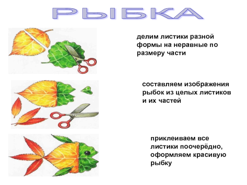 приклеиваем все листики поочерёдно, оформляем красивую рыбку