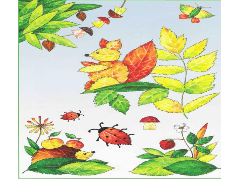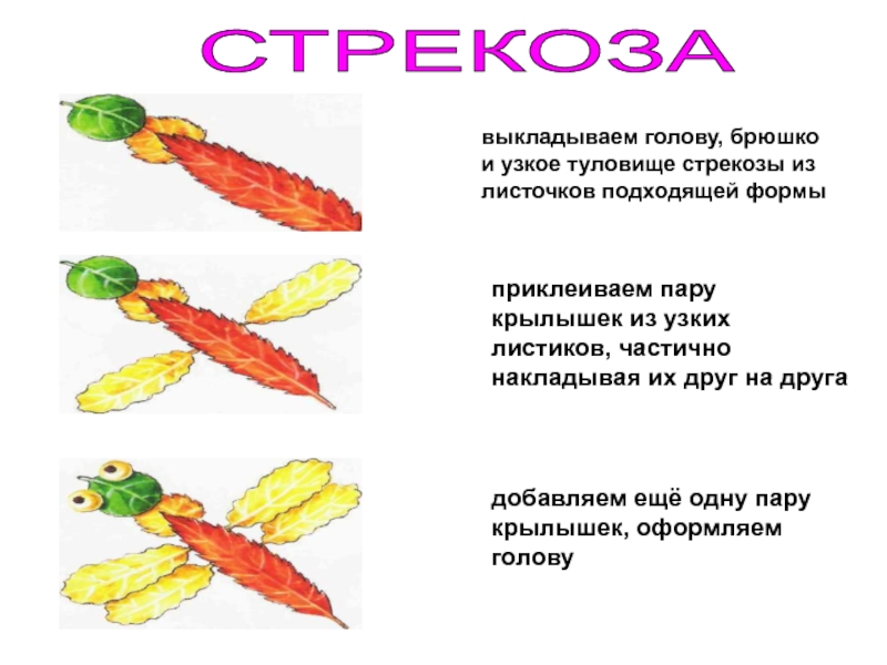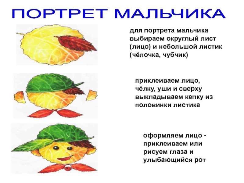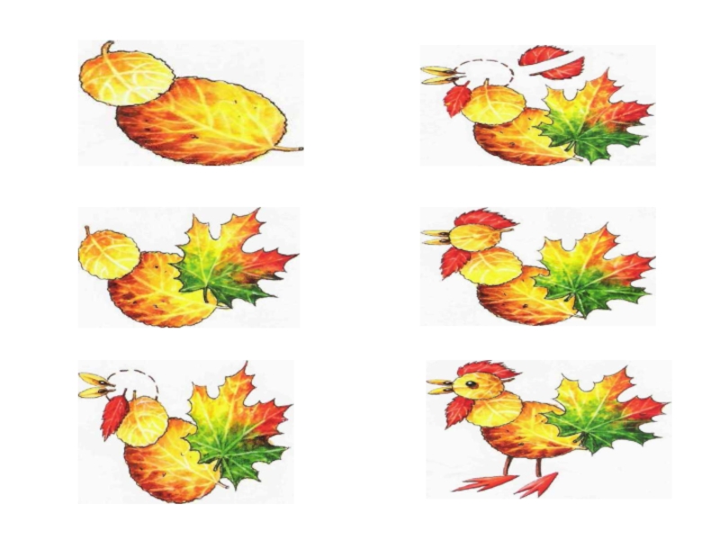 поочерёдно приклеиваем листики, изображающие разные части туловища