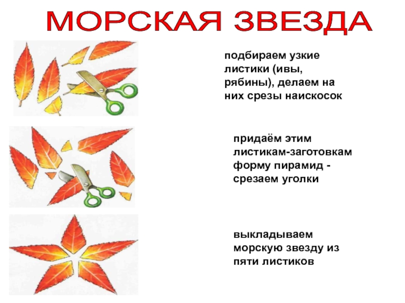 выкладываем морскую звезду из пяти листиков