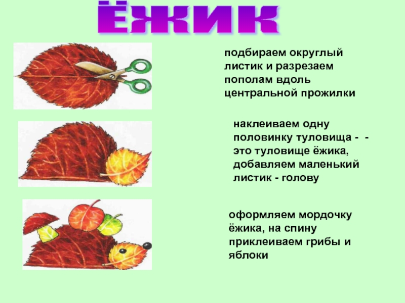 оформляем мордочку ёжика, на спину приклеиваем грибы и яблоки