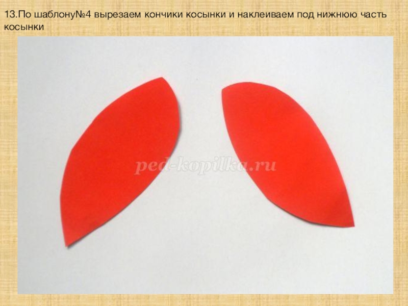 Слайд 1613.По шаблону№4 вырезаем кончики косынки и наклеиваем под нижнюю часть косынки