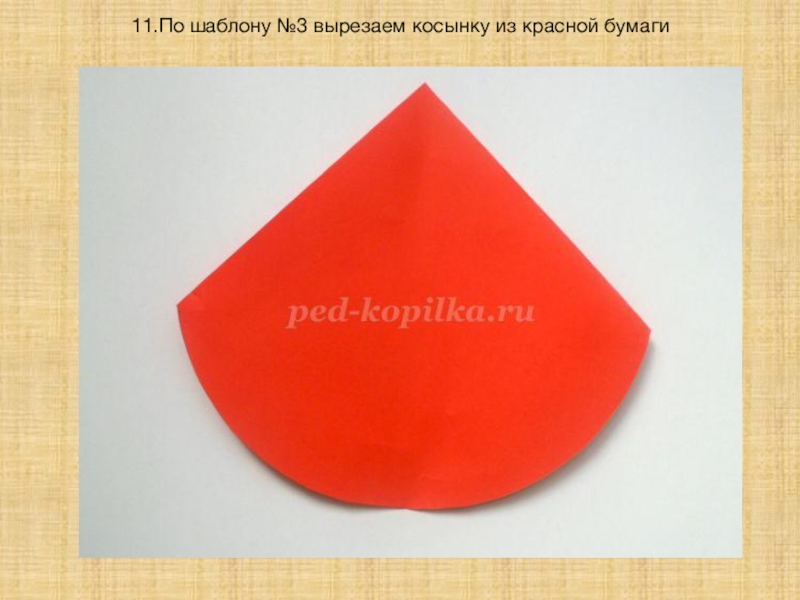 11.По шаблону №3 вырезаем косынку из красной бумаги
