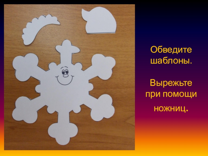 Слайд 2Обведите шаблоны. Вырежьте при помощи ножниц.