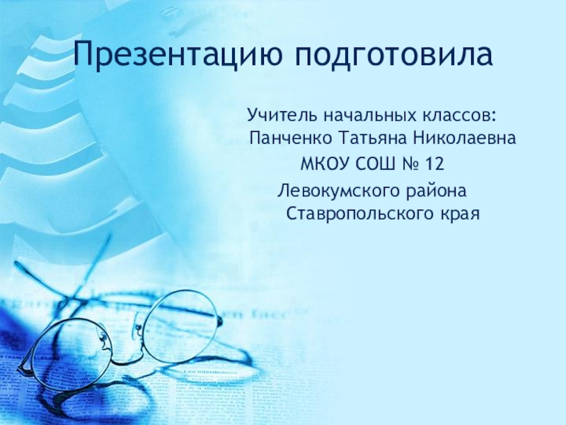 Презентацию подготовилаУчитель начальных классов: Панченко Татьяна Николаевна МКОУ СОШ № 12 Левокумского района Ставропольского края