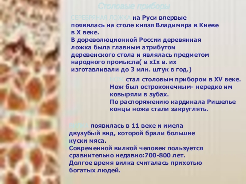 Современной вилкой человек пользуется сравнительно недавно:700-800 лет.