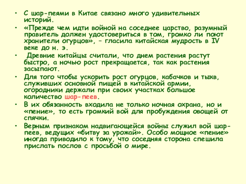 Для того чтобы ускорить рост огурцов, кабачков и тыкв, служивших основной пищей в китайской армии, огородники держали при своих участках большое количество шар-пеев.